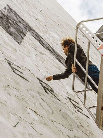 We activated our network and actually found someone who developed a special wall plaster that would crumble in a very particular manner. The event space with 600 square metres of house facade, in Berlin-Mitte was quickly scouted and marked. The clock was ticking.