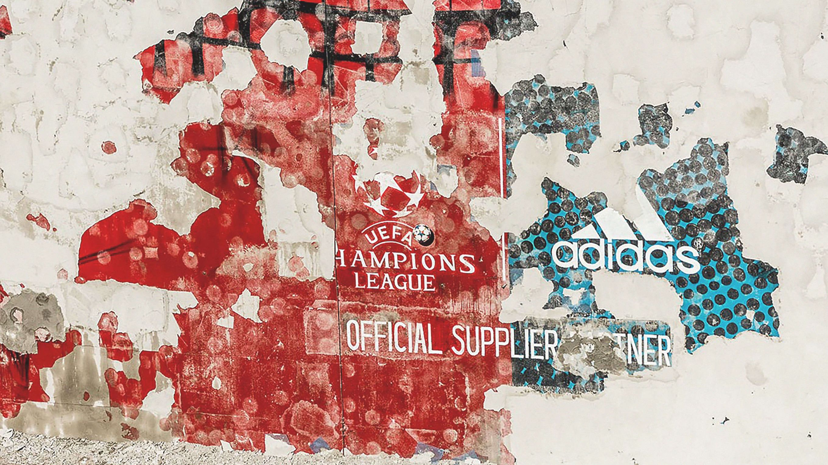 The only thing missing was the 350 fans, who exposed the wall, freeing it of the plaster cover with the new adidas Champions League balls in brand new adidas shoes. Music with drinks for free. Finally, a team spirit arose among all to "defeat" the wall. All's well that ends well. The plaster fell, the motif was exposed. Everyone breathed a sigh of relief, high fives all around.