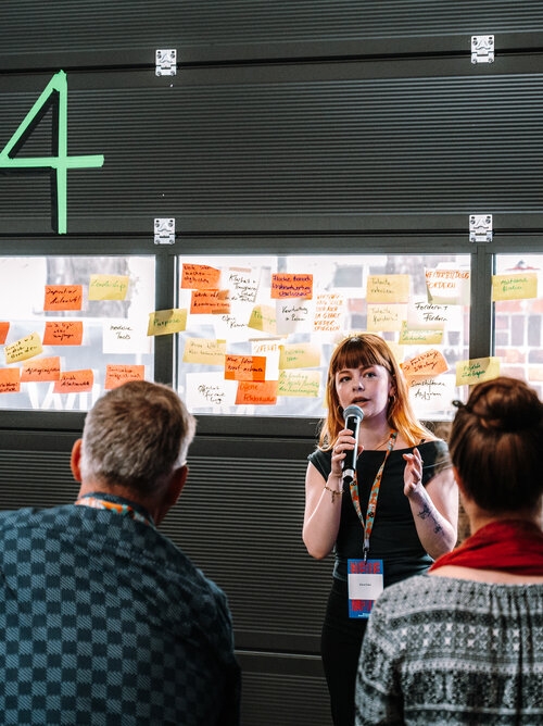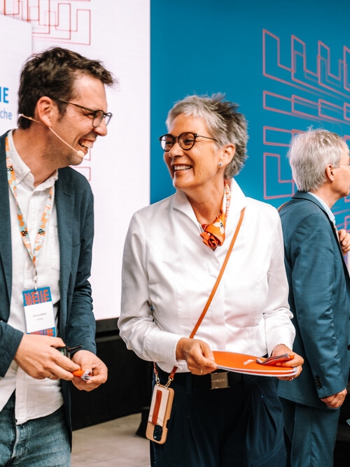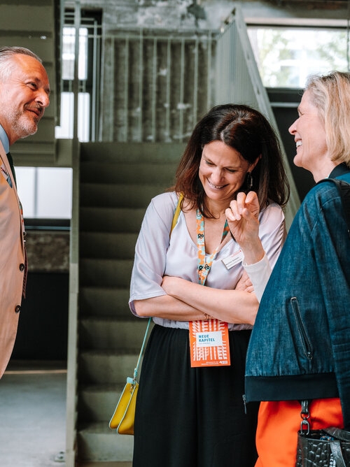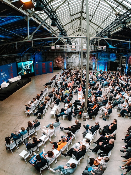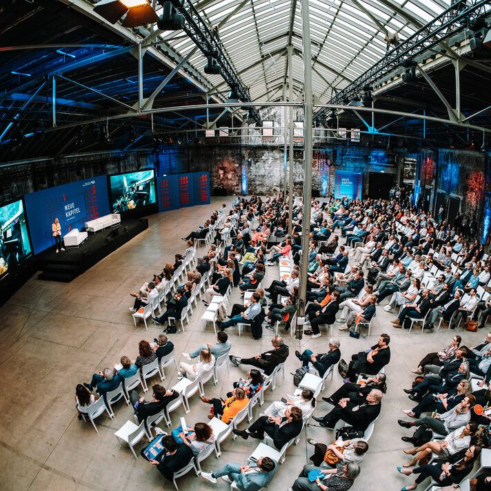 Als Leitmotiv setzten wir "Neue Kapitel" direkt auf das Cover – visuell und inhaltlich. Und mit co-kreativen Workshops schrieben wir die Kampagnenstory der “Neuen Kapitel” weiter. Corporate Design, digitaler Auftritt und Kommunikation aus einer Feder. Parallel entwickelten wir co-kreativ die Event-Dramaturgie: Leipzig mit Diskussionsabend, Berlin mit Kongress in den Wilhelm Studios. Das Herzstück: eine Main-Stage, dargestellt als aufgeschlagenes Buch. Wie ein Bestseller, nur live und zum Anfassen.