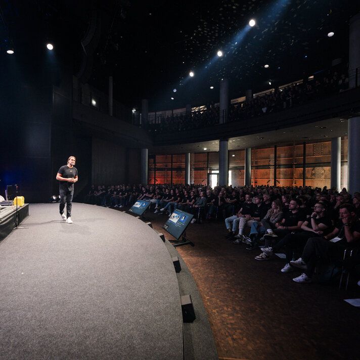 In mehrtägigen Co-Creation Workshops entwickelten wir gemeinsam die Eventidee – echte Teamarbeit statt Solo-Flug. Mit der "Zwicky-Box" Methode entstanden acht verschiedene Leitmottos, aus denen "FEEL THE COSMOVERSE" als strahlender Sieger hervorging. Design-Futuring und Future LinkedIn Post Methoden erweiterten den Vorstellungsraum bis ins Unendliche. Wir coachten interne Speaker zur Entwicklung interaktiver Formate und organisierten das Projektteam in thematische Arbeitskreise – jeder ein Experte für sein Segment des Universums. Die Szenografie folgte einem erlebnisorientierten Konzept mit stufenweiser Raumöffnung. Statt Frontalberieselung setzten wir auf echte Partizipation und Dialog – Mission Interaction erfolgreich gestartet.