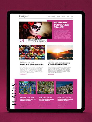Wenn eine(r) geht, trauern viele. So beleuchten verschiedenste redaktionelle Beiträge die Emotion Trauer aus unterschiedlichen und auch internationalen Blickwinkeln heraus. Trauer Now trifft damit einen direkten Nerv. Das spiegeln Anfragen und Kommentare von Betroffenen, Redakteuren und Menschen aus Friedhofsgewerken. Alle 33 Sekunden stirbt ein Mensch in Deutschland – das sind eine knappe Million Menschen pro Jahr, die wiederum eine große Anzahl an Trauernden hinterlassen. Unsere Leitidee der „Sterbeuhr“ verdeutlicht diese Dimension sowie die Wichtigkeit des Themas und stellt gleichzeitig die Frage: Wohin mit der ganzen Trauer?